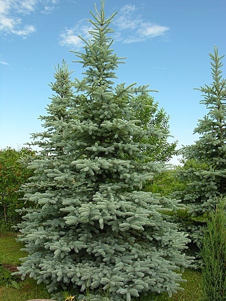 Дерево высокорослое, достигает 15 м в высоту и около 8 м в ширину. Обладает ионизирующими воздух свойствами. Ежегодный прирост составляет 15 см в ширину и до 30 см в высоту. Крупномер колючая Glauca покрыт серебристо-голубой, жесткой хвоей (около 2,5 см). Ель ценится благодаря необычной окраске и красивой форме кроны. Может использоваться в одиночных посадках, для формирования живой изгороди. семена светолюбивы, морозостойкие, не требовательны к почве, но любят обильный полив.