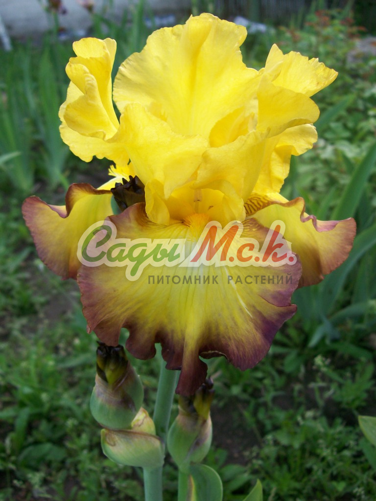 Ирис Burgermeister - мощный и впечатляющий сорт ириса. Желтоватый с лавандовым налетом верх, орхидейно-пурпурный низ. Высота 70-80 см.