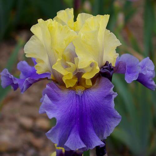 Edith Wolford - очаровательный гофрированный ирис с кремово-желтыми внутренними лепестками, сине-фиолетовыми фолами и голубой бородкой, переходящей в оранжевый оттенок. Внесет в цветник прохладную, освежающую ноту. Высота растения: 70 см.Период цветения ранний. Размер цветка 13-15 см.
