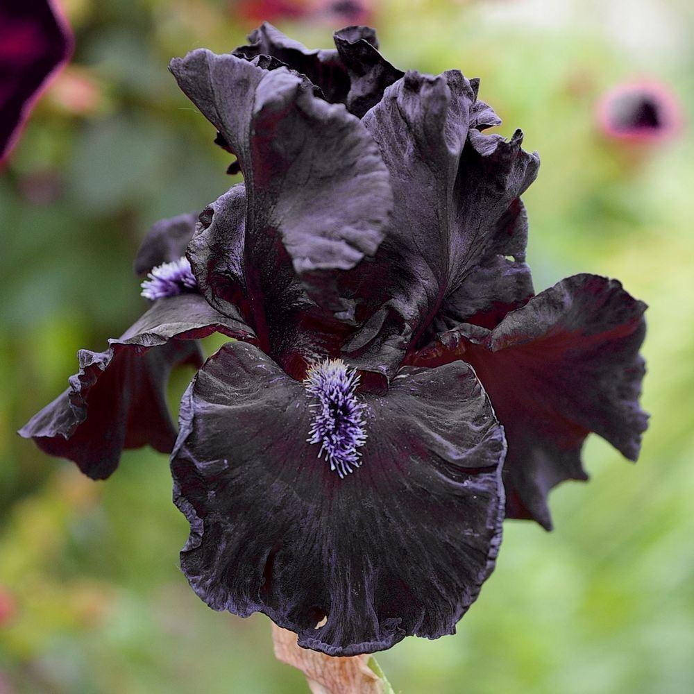 Ирис Obsidian- черный ирис с темной бородкой, кончики которой светлые (почти белые). Высота цветоноса 84 см.