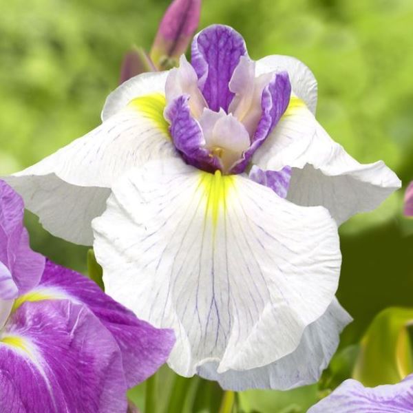 Ирис японский Квинс Тиара имеет короткое корневище, утолщенное, до 10 см длиной и 1,5 см шириной, с многочисленными придаточными корнями, образующими мочку. Прикорневые листья растения не более 50 см высотой, светло-зеленые, с выступающей блестящей средней жилкой. Прямой цветонос возвышается над листьями на 10-15 см. Цветки без запаха, могут достигать 15 см в поперечнике. У десятилетнего куста образуется 10-15 цветоносов, на каждом из которых может быть до 4-х бутонов (как правило, их все-таки два). Цветки на кусте распускаются не одновременно. Растет на любых почвах, лучше всего на слабокислых, как на свету, так и в тени, в рокариях и на берегах водоемов. Не требует удобрений, укрытий и всяческих особых агротехнических приемов. Цветет в первой половине июля.