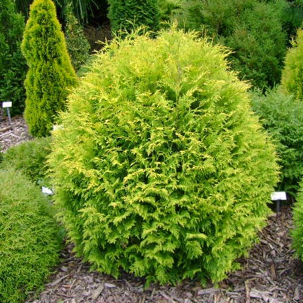 Декоративные качества: Декоративна благодаря шаровидной естественной форме кроны и золотисто-зеленой хвои.<br>